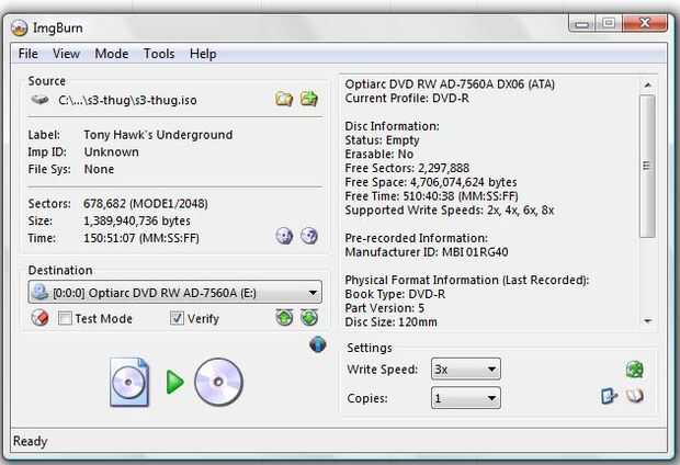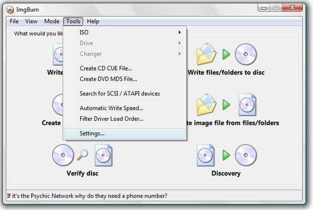 Haga clic en herramientas, luego configuración, una nueva ventana se abrirá. Ir a la pestaña write y desactive la ficha de prueba de quemadura de habilitar.
