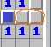 A menudo te encontrarás con algo como el caso anterior. Aquí una mina está presente en cualquiera de los bloques marcados en naranja. Puede abrir el bloque azul, es seguro. Pensar a ti mismo, ¿qué pasará si una mina se coloca en el bloque azul, se satisfarán el 1s?