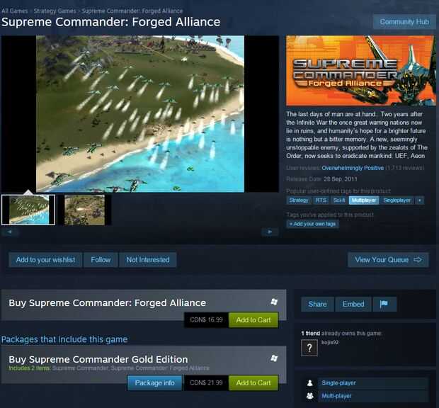 Usted puede comprar Comandante Supremo: Alianza forjada por una cantidad razonable en Steam: http://store.steampowered.com/app/9420/