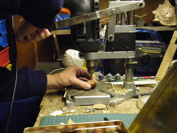 La más aseada y más redondo el agujero, sin embargo, menos probable el conker es dividir. Por lo tanto se recomienda uso de un taladro eléctrico, como se ve abajo, con el hijo de la #2 me ayuda a prepararse para un concurso del Pack de Cub.