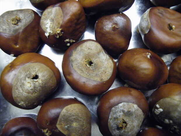 El pedacito de taladro utilizado debe coincidir con la cadena ser usado - hilo de la conker en unos 30-45cm (un pie a 18 pulgadas) de cuerda, luego un buen nudo gordo al final de la cadena para dejar de la conker deslizarse apagado.
