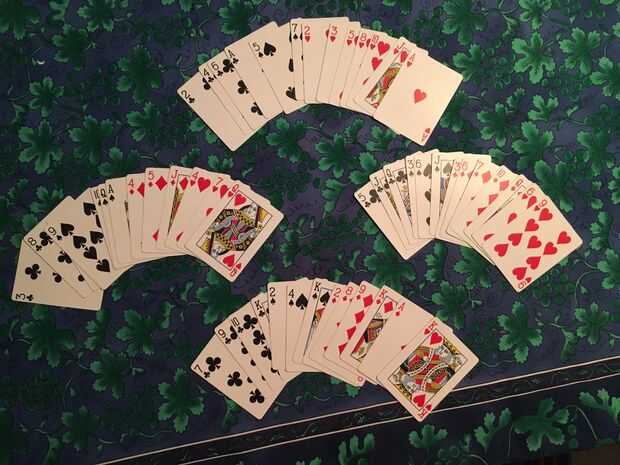 Se muestra más arriba es la mano de 13 cartas que cada jugador tendrá después de tratar; en el derecho de la tarjeta se girarán por ejemplo pero por supuesto los jugadores no compartirá el contenido de su mano