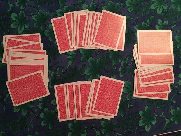 A principio de cada ronda, el crupier baraja y distribuye las tarjetas a cada uno de los 4 jugadores, comenzando por el jugador a su izquierda. Al final de la transacción, cada jugador debe tener 13 cartas.