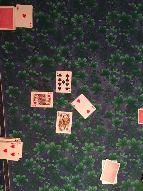 Cada ronda debe comenzar con la 2 de clubes; Esto se muestra en la foto primera de arriba. Esto significa que quien tiene esta tarjeta en su mano debe jugar para empezar la ronda. Una vez que se ha reproducido esta tarjeta, los jugadores restantes jugar una carta que va hacia la derecha.
