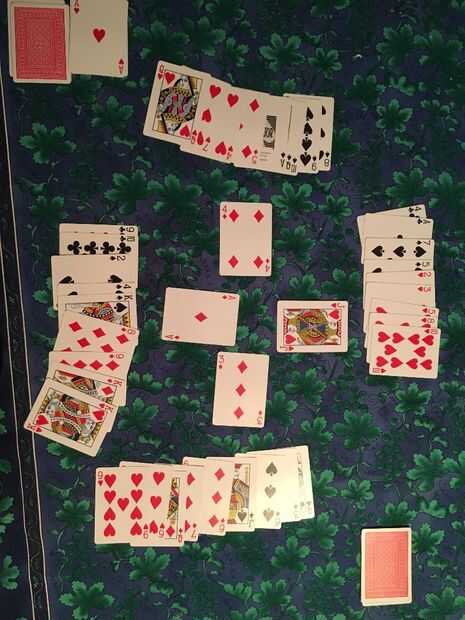 En la mano anterior, fueron conducidos los diamantes; por lo tanto el jugador que jugó el as de diamantes pierde la mano y toma jack de corazones. Este reproductor agrega a su puntuación total para esa puntuación redonda y general.