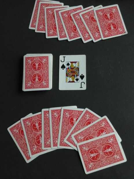 Una vez iniciado el juego, dependiendo de qué orden jugadores desean continuar en la persona a la izquierda o derecha de los lugares de distribuidor una tarjeta boca arriba en la pila de "descartar" que coincide con la tarjeta de proceso en traje o en su valor nominal. Para la imagen de arriba, se puede colocar un gato o una tarjeta en el juego de los clubes. Si el jugador no puede colocar una tarjeta de abajo, dibuja hasta que puede (a menudo dando por resultado una gran pila de tarjetas en su mano).