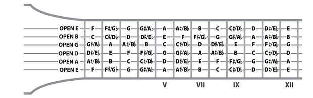 Hay una foto de arriba es de donde están las notas en una guitarra.