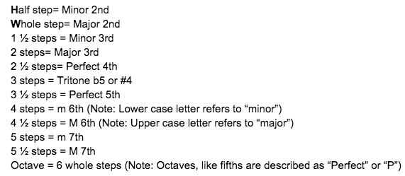 Dos pasos de medio es un paso todo. Hay doce intervalos (básicos). Cada uno tiene un nombre.
