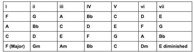 - Números romanos indican el lugar numérico del acorde en la escala.