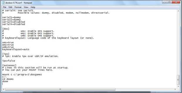 4. escribir comandos en la parte inferior de este cuadro de texto hará que estos comandos cuando arranca el DOSBox.