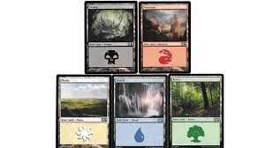 Tierra- Como usted aprendió en la sección de maná, tierra son lo que le da maná para lanzar hechizos y criaturas. Cartas de tierra no cuestan cualquier maná para lanzar. Tierras son significado permanente permanecen en el campo de batalla a menos que eliminado o destruido y sólo se puede utilizar en su turno. Una carta de la tierra se puede colocar a cada paso. Para utilizar una tarjeta de la tierra y mana, necesita aprovechar la tarjeta. Esto significa que usted gire la tarjeta hacia los lados, sigue hacia los lados hasta su siguiente turno donde usted endereza todas tus cartas si donde la última roscado. Aprovechando un terreno le da un mana.
