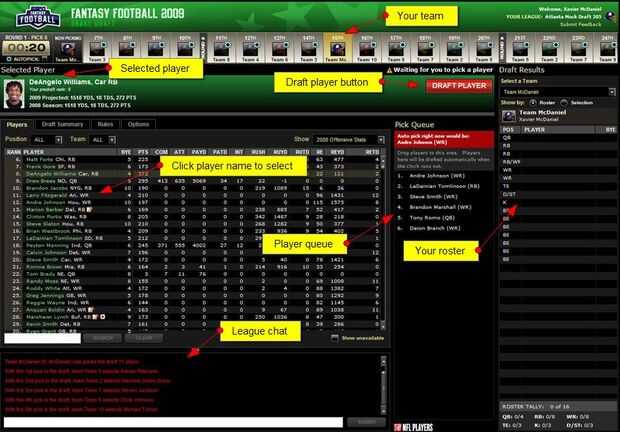 El proyecto es donde se forma su equipo. Donde escoges en el proyecto es totalmente aleatorio, su hecho por simulación después de todo el mundo ha sumado a la liga. El proyecto será serpiente. Lo que significa si es una liga de diez equipos. Si escoge primero en la primera ronda usted no escoge otra vez hasta el décimo en la segunda ronda y luego la primera en la tercera ronda. Lo mismo se aplica si escoges séptimo en la primera ronda que te escoges tercera en la segunda ronda y así sucesivamente y así sucesivamente. Hay dieciséis rondas en un proyecto así que asegúrese de que usted elige sabiamente a tus jugadores.