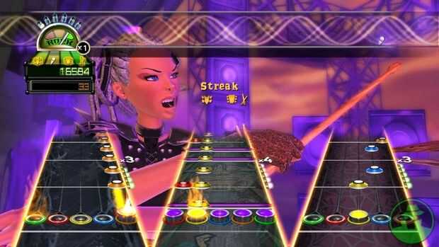 Colores diferentes "Notas" vendrá por una autopista, mirando como el mástil de una guitarra, con los divisores de traste (las líneas débiles) al ritmo de la canción que está jugando. Las notas estarán en tiempo con las notas de la canción real. Como las notas vienen por la autopista, alcanzan la "zona de strike" de la pantalla, donde están las almohadillas de color circulares. Los jugadores tienen que mantenga pulsado el botón correspondiente en el periférico que están jugando (guitarra electrica plomo, bajo guitarra o batería) en el tiempo con cuando la nota llegue a la zona de strike y pulsar la nota (la barra de rasgueo de los periféricos de guitar, pulso el botón color del tambor periférica a la guitarra). Esto toca una sola nota y puede haber varias notas a la vez, como un acorde en la guitarra. Continúa haciendo esto hasta que la canción ha sido completada, o usted "no hacia fuera" de una canción. Fuera fallando significa perder demasiadas notas, o hacer demasiados errores durante la canción. Un error sonará parecido a un "plunk" o un sonido de "tink". La interfaz de la canción de guitar hero rock banda son casi idénticos, la única diferencia está es que Guitar Hero tiene notas circulares y una zona circular de la huelga. Banda de rock tiene notas rectangulares y una zona rectangular de la huelga. Como golpe más notas en una fila sin cometer un error, usted gana un multiplicador de puntuación, hasta x4.