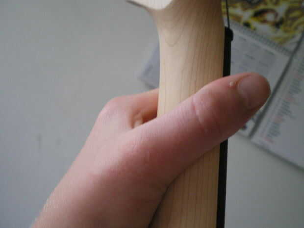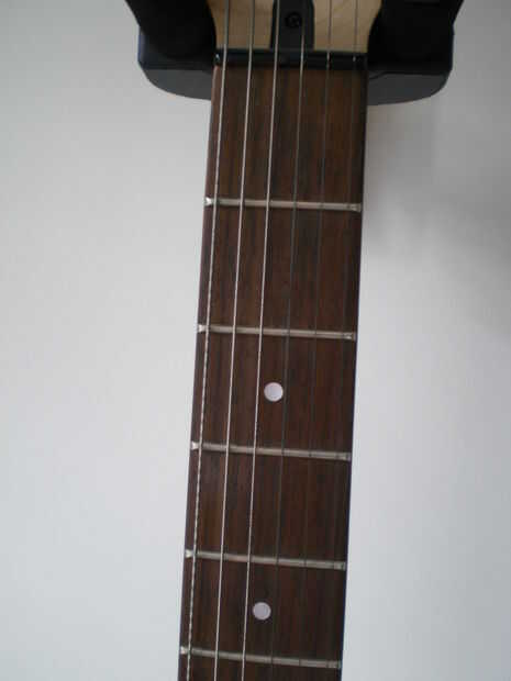 La segunda imagen muestra cómo poner la mano en la parte posterior de la guitarra, aunque aproximadamente ya que es muy difícil de fotografiar su propia mano en la parte trasera del diapasón con la guitarra derecha.