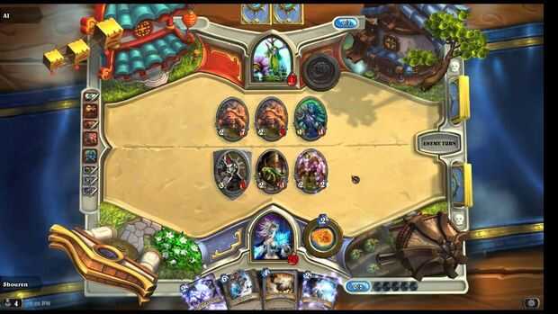 Cuando desee terminar su turno, usted tiene que haga clic en el botón derecho central para finalizar tu turno para que tu oponente puede jugar. Cuando tu oponente se hace y lo vuelve a usted. Luego dibujar una tarjeta, aumento de mana extra una ranura, y se vuelva a su barra de maná.