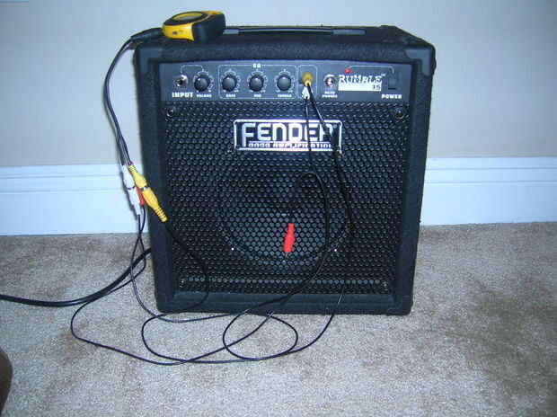 este es el producto final.Paso 1: Lo que necesita 1. amplificador de guitarra2. iluminación de cátodo frío de computadora con micrófono3. pistola de soldar con soldadura4 pistola de pegamento caliente con palo de pegamento caliente5. alambre stripier