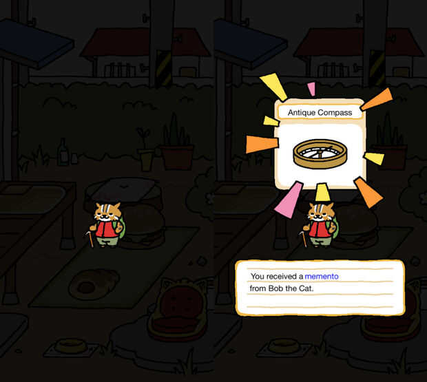 A veces, cuando los gatos vienen a visitar, que te traen un recuerdo! Al abrir la aplicación, la pantalla será totalmente negra y entonces uno de los gatos pop-up y compartir su recuerdo con ustedes. :)