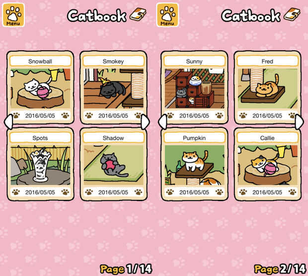 Cuando los gatos se presenta en su patio, siempre tome fotos de ellos con la cámara en el menú de juegos. Estas fotos Haz enviará automáticamente el libro del gato. Tiene 18 fotos por gato disponible.