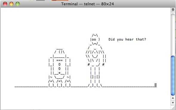 Este instructable le mostrará algo de diversión y cosas útiles que hacer con la aplicación Terminal de Mac.Terminal puede ser accesado por ir a aplicaciones > Utilidades > TerminalPaso 1: Star WarsAbrir Terminal, copia y pega esto en (telnet towel.b