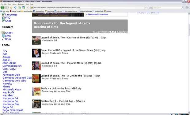 Ahora, una vez que la página se ha cargado, debe haber un montón de juegos diferentes. Haga clic en el primero de ellos que dice 'La leyenda de Zelda Ocarina of Time' y espere que cargue la página