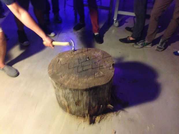 Es muy fácil de jugar y es una gran prueba de masculinidad o feminidad. Todo lo que necesitas es un tocón, martillo, clavos, un grupo de amigos y vecinos que no les importa algo de ruido.