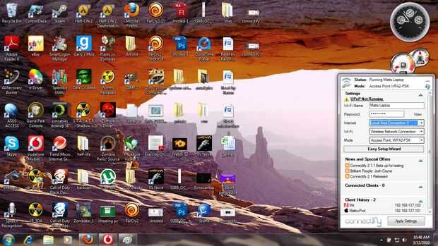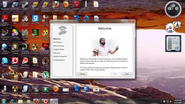 primero conectar su internet según normal y ejecutar el instalador de connectify. Siga las indicaciones hasta llegar a la pestaña de compartir conexión y seleccione su conexión a internet prepago (mina era la conexión de área local 2) usted puede encontrar esto yendo a Panel de Control > ver estado de red y tareas de > y la red será una red de área local 1,2,3 ect.