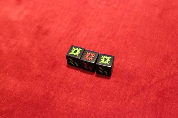 -Con ese ser dijo, cada rollo debe ser con 3 dados cada vez. Si pones un chip de cerebro y un tiro dado a un lado, necesita agarrar 2 más dados del envase para hacer 3 dados.