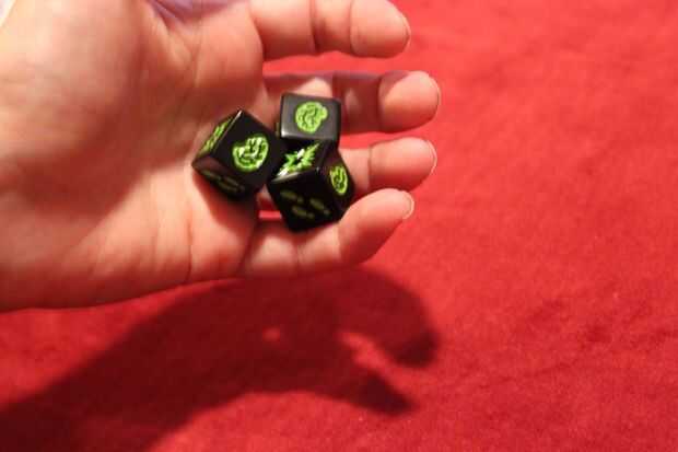 Dados Zombie es un juego de dadosde juegos de Steve Jackson. Es una cerveza ocasional rápida y juego de pretzels. Radndomly usted escoja tres dados de una taza y hacerlas rodar. El objetivo es presionar tu suerte y obtener tantos cerebros como sea po