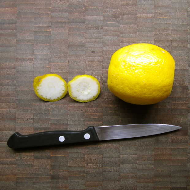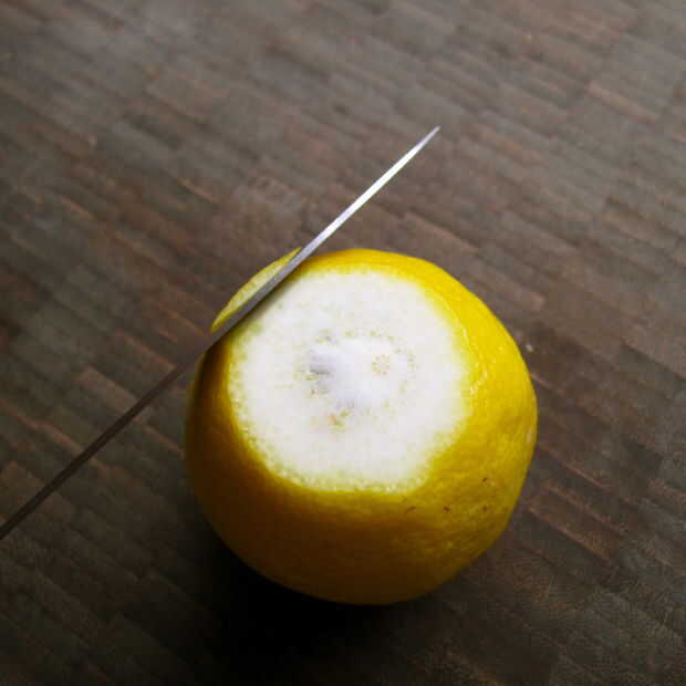 Coloque el cuchillo en el borde de la piel y guíelo hacia abajo y alrededor de la curva del limón. La cantidad de médula dejó en la mía es realmente siempre querrá más tienen, más que y pueden afectar el sabor de tu piel!
