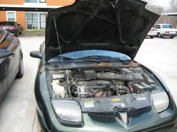 Suelte las capillas de cada coche. Apuntalar las capuchas con varillas, si es necesario.