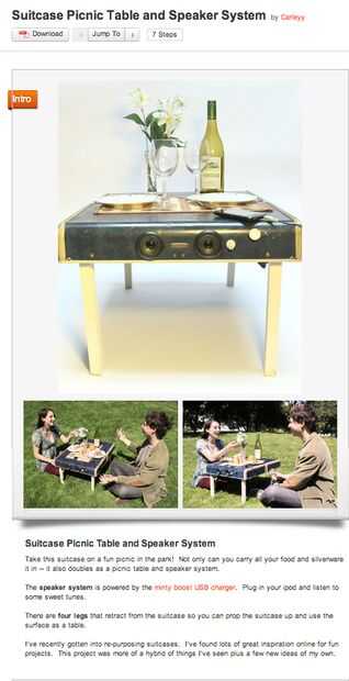 Este proyecto llega a todo el terreno de criterios. Sería un regalo fantástico para cualquier familiar o amigo. Es un nuevo giro en la reasignación de maleta - no he visto nada igual. Se descompone en pasos apropiados y cada paso se explica en gran detalle. Es obvio que el proyecto realmente funciona y se ha utilizado.