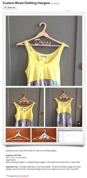 Se trata de una inteligente y original idea que haría un gran regalo para los padres que esperan o para gente que conoces que encanta ropa. Los archivos para lasercutting han incluido (los diferentes tres!) y las fotos son geniales. Mientras este proyecto sufre la misma falta de documentación como los pendientes de esqueleto de pescado, obtiene mayor marcas gracias a su originalidad y el hecho de que puede ser personalizado fácilmente.