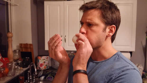 Huevos duros medio toman 8 minutos. Empresa tomar hasta 30 minutos. El secreto revelado aquí es bajar la cáscara sin rompiendo el huevo.Paso 1: Hervir un huevo Poner suficiente agua en la bandeja para cubrir el huevo. Llevar a hervir. Hervir durante