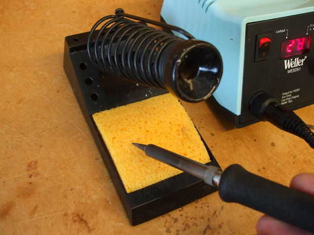 Encienda el interruptor de encendido estación de soldadura. Establezca la temperatura deseada de la estación de soldadura girando en panel frontal. La mayoría de estaciones de soldadura de buena toma 1-2 minutos para alcanzar la temperatura deseada. Utilizar agua destilada para humedecer la esponja en el soporte (la esponja debe ser húmeda, no empapar mojado). La punta debe limpiarse antes de cada uso limpiar con esponja húmeda (cuando la punta está lo suficientemente caliente). Una punta nueva necesita revestido, calienta y luego se cubre con soldadura antes de su primer uso (esta técnica se llama "estañado" de la punta). El propósito del estañado es formar una capa delgada alrededor de la punta que proporciona a la mejor transferencia de calor desde la punta de la soldadura común. Sólo limpia punta de transfiere calor bien.