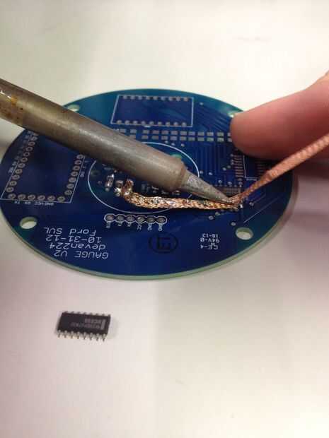 3) usando la mecha de soldadura y un cautín, calienta la mecha de soldadura sobre las almohadillas y quitar la soldadura sobrante