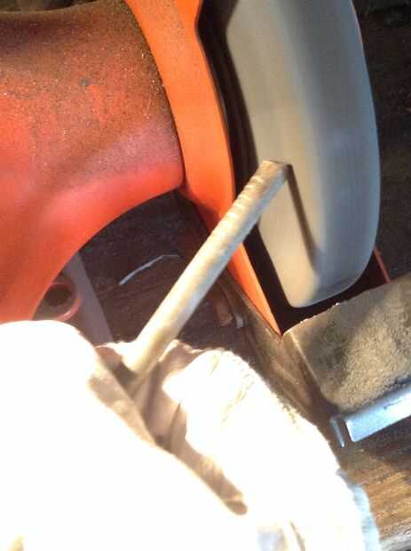 Comienza por cortar la cabeza de la uña con el Cortapernos. Luego tomar el clavo y molido de la izquierda de rebabas por los cortadores de pernos, esto hace más fácil crear el cono sin la irregularidad crea rebabas o hace que sea mucho más suave si quieres una sola terminó Bo Shuriken.