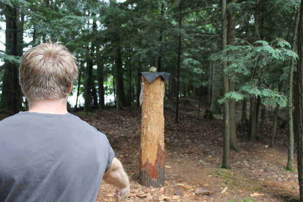 Para comenzar este paso, encontrar la distancia óptima del objetivo. Según el artículo de San Valentín, para un tiro solo rotación deben estar cerca de diez a once pies de su objetivo. Una vez más, se trata de una estimación. Su cuchillo y su forma se alteran estas aproximaciones, así que trate de encontrar su propio "punto dulce".