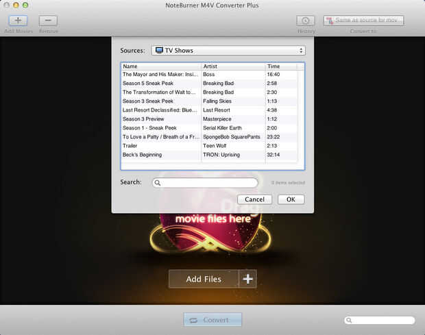 Descargar e instalar el iTunes NoteBurner película al convertidor Chromecast en tu Windows o Mac PC, a continuación, haga clic en agregar botón movie en la interfaz principal para elegir el contenido que desea convertir de librería de iTunes. Después de eso, haga clic en agregar, se importa correctamente los archivos.