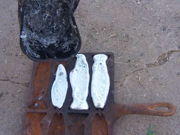 Verter yo uso solo un par de canal cerraduras y Vierta lentamente el metal en el molde.