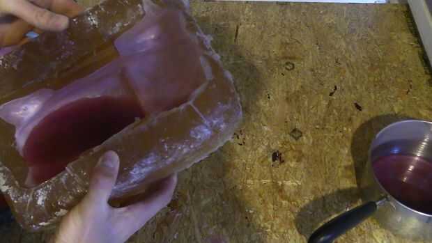 3. Vierta la cera en el molde slushing alrededor cubriendo el molde de manera uniforme.