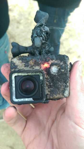 -Para aquellos que estaban preocupados, sobrevivieron el GoPro. La lente estaba un poco sucia, todo lo demás era ileso.