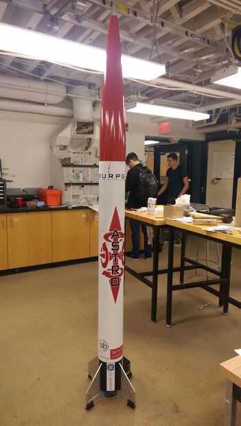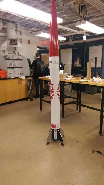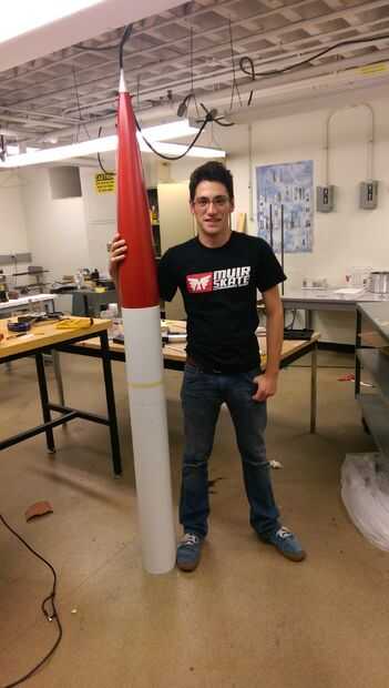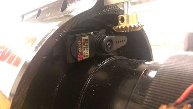Para aquellos que deseen información más técnica sobre ASTRo, está hecho de fibra de vidrio, excepto el componente negro en la parte inferior del cohete. Esto es un ' fin' que es impreso en 3D. En la parte inferior son servos, que giran las superficies de control en las aletas.