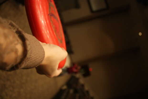 Nota: el dedo índice que está en el borde del Frisbee debe apuntando en la dirección de tu objetivo. Si es así, estás en buena forma.