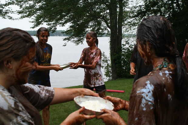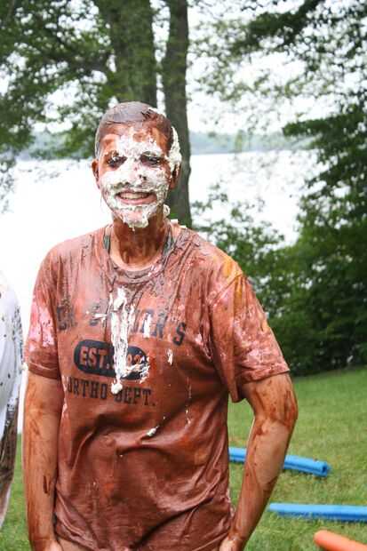 Otro favorito, este juego es una variación de sillas musicales excepto que usar pasteles de crema batida en lugar de sillas.