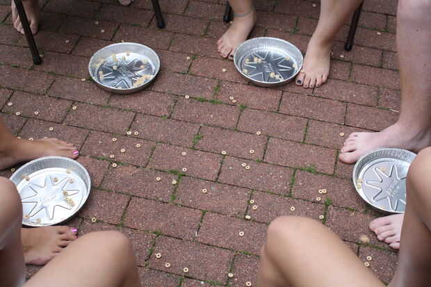 Yo siempre comenzar el partido con este juego ya los niños no babosas aun y no desordenar las sillas.  Mantener un ojo hacia fuera para los tramposos que intentan caer Cheerios con sus manos.