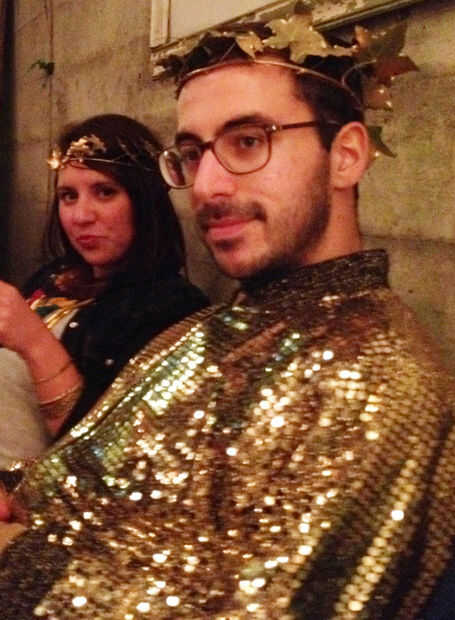 Un partido de la fiebre del oro es nada si no es un asunto elegante, es por eso que hice mis amigos usar guardapolvos, lentejuelas de oro llamativos y aerosol pintado coronas de hiedra.