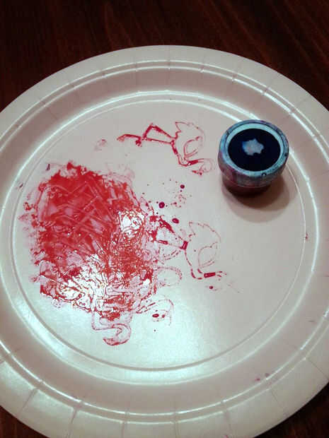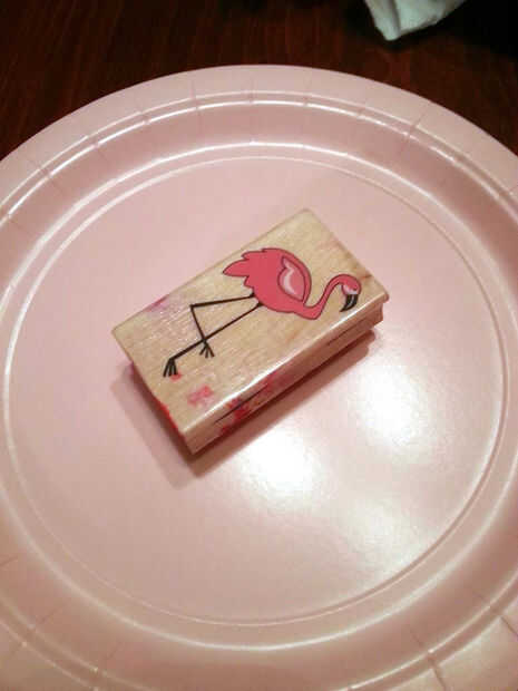 Para hacer mis placas medidas utilicé un sello de goma limpiado y dulces de color rosa o rojo para colorear como la "tinta".
