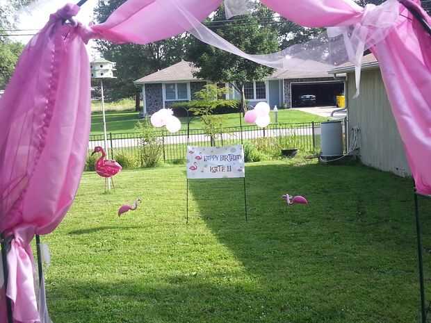 Por supuesto, esto es flamenco temática así que decoré con un flamencos rosa y yarda.