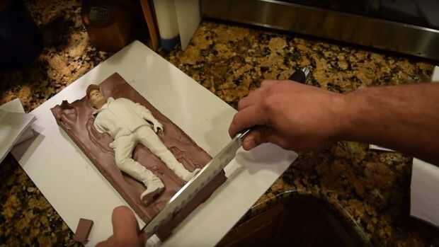Usando un cuchillo o herramienta de esculpir, limpiar los bordes y la superficie de la base de arcilla. Se trata de cómo aparecerá su casting final de chocolate, así que hacen un buen trabajo! :)