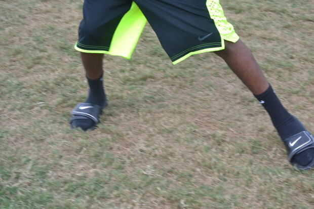 mantener la bola en que manosPaso 1: Doblar ligeramente la espalda hacia adelantePaso 2: Apuntar el pie hacia abajo Tienes que bloquear el pie apuntando hacia abajo y poner la tensión en él.Paso 3: Suba la pierna recta subir la pierna y seguir rectoP